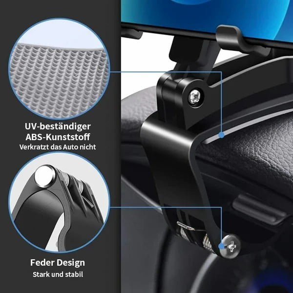 Dieser Handyhalter passt zu 99 % der Fahrzeugmodelle und erfüllt die Sichtanforderungen unterschiedlicher Körpergrößen. Er ist geeignet für alle Geräte mit einer Breite von 6 bis 8,5 cm.
