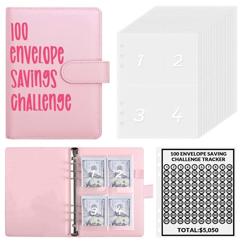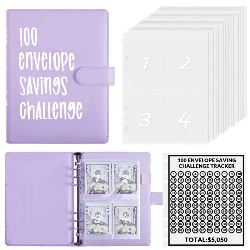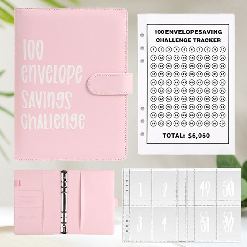 🎁Eine großartige Möglichkeit, mit dem Sparen zu beginnen! 🎉 Das 100-Umschlag-Challenge-Kit wird mit einer A5-Ordnerhülle geliefert, die über Kartenfächer, ein Bargeldfach und einen Edelstahlordner verfügt.💸