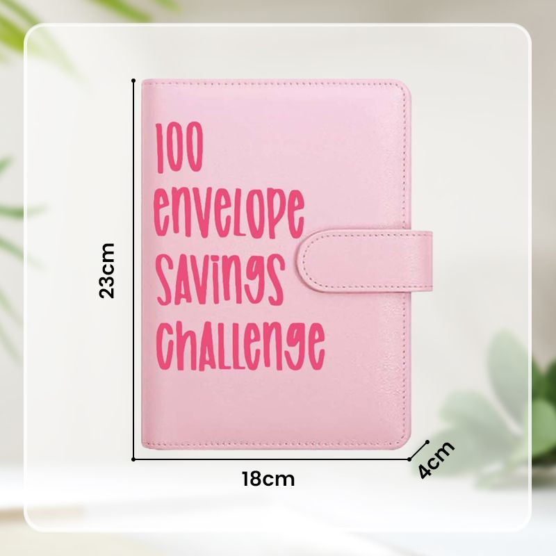 Lieferung mit einem Ordner im Format A5 (23 cm hoch x 18 cm breit), 1 laminierten wiederverwendbaren Tracker, Taschen mit den Nummern 1 bis 100 für die traditionelle Methode zum Sparen von 5050 £.