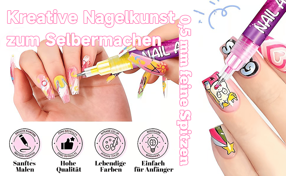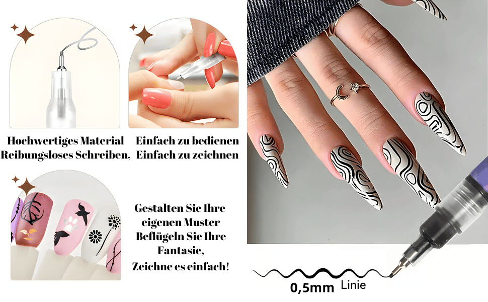 DIY-NAGELMUSTER FÜR JEDEN ANLASS: Mit diesem Nagelkunst-Farbstift-Set können Sie bequem von zu Hause aus detaillierte Muster wie Blumen, Tiere oder abstrakte Designs erstellen. Verleihen Sie Ihren Nägeln für jeden Anlass eine persönliche Note und erzielen Sie professionell aussehende Nagelkunst, ohne einen Salon zu besuchen.