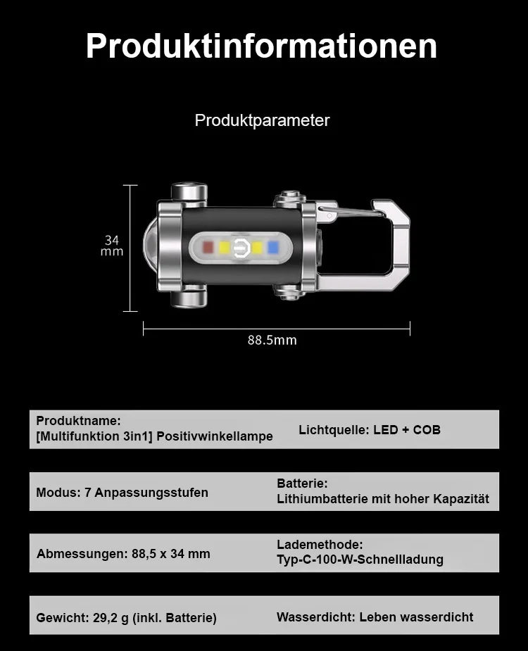 【3-in-1 Multifunktionsgerät】Schlüsselanhänger-Taschenlampe