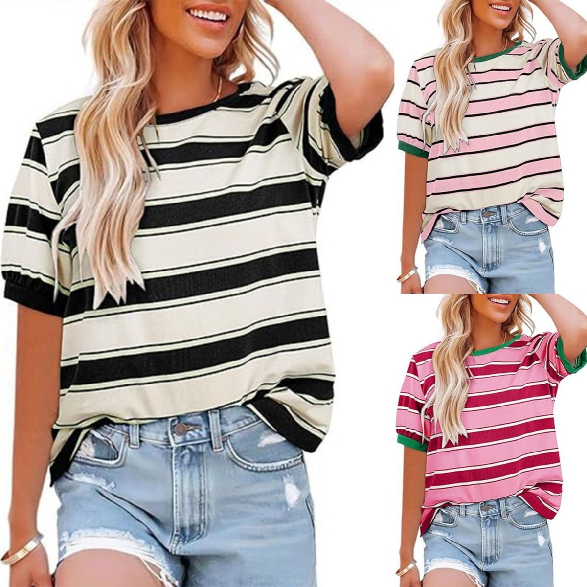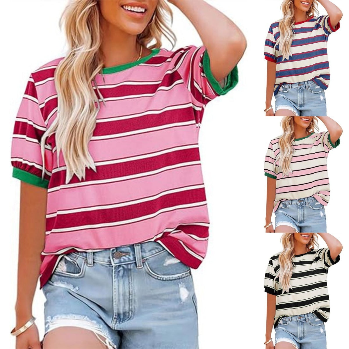 Paket enthalten: 1* Lässiges gestreiftes T-Shirt mit Farbblockmuster für Frauen